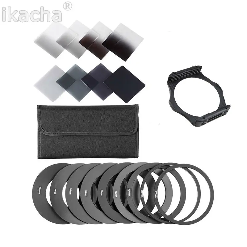 Универсальный постепенное нейтральной плотности Постепенное 8 шт. ND2 4, 8 16 Набор фильтров + 9 шт. переходное кольцо + держатель фильтра для Cokin ...