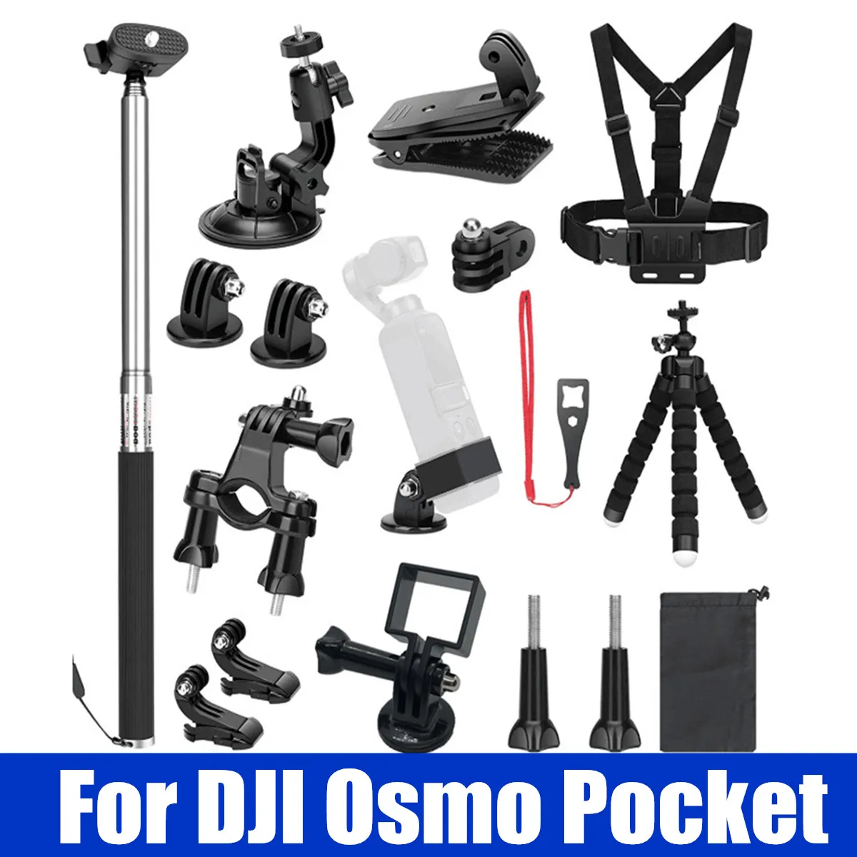 19 в 1 Многофункциональный расширенный водонепроницаемый чехол с защитной рамкой монопод для DJI Osmo Pocket Handheld Action camera Set