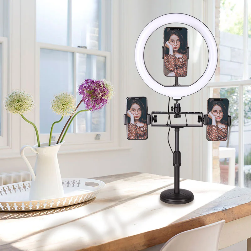 10-дюймовый кольцевой светильник с подставкой светодиодный светильник для селфи-камеры кольцо для телефона штатив и держатель для телефона для видеосъемки
