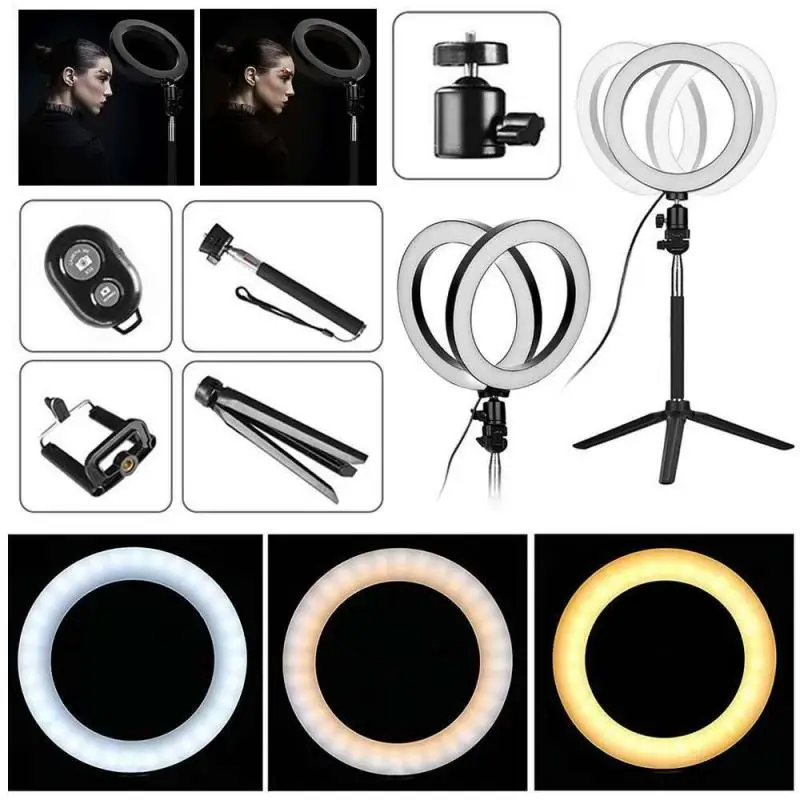 5 в 1 светодиодный кольцевой светильник для селфи с регулируемой яркостью 8 дюймов, светильник для фотостудии с зажимом для телефона и штативом