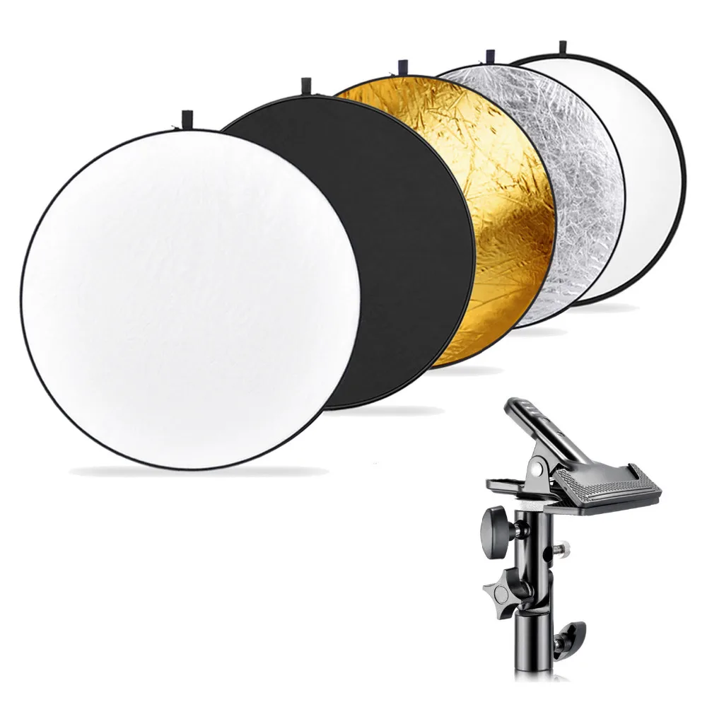 Neewer фотографии 5 в 1 Multi-светоотражатель отражатель (43 дюймов/110 сантиметров) с тяжелых металлический зажим держателя
