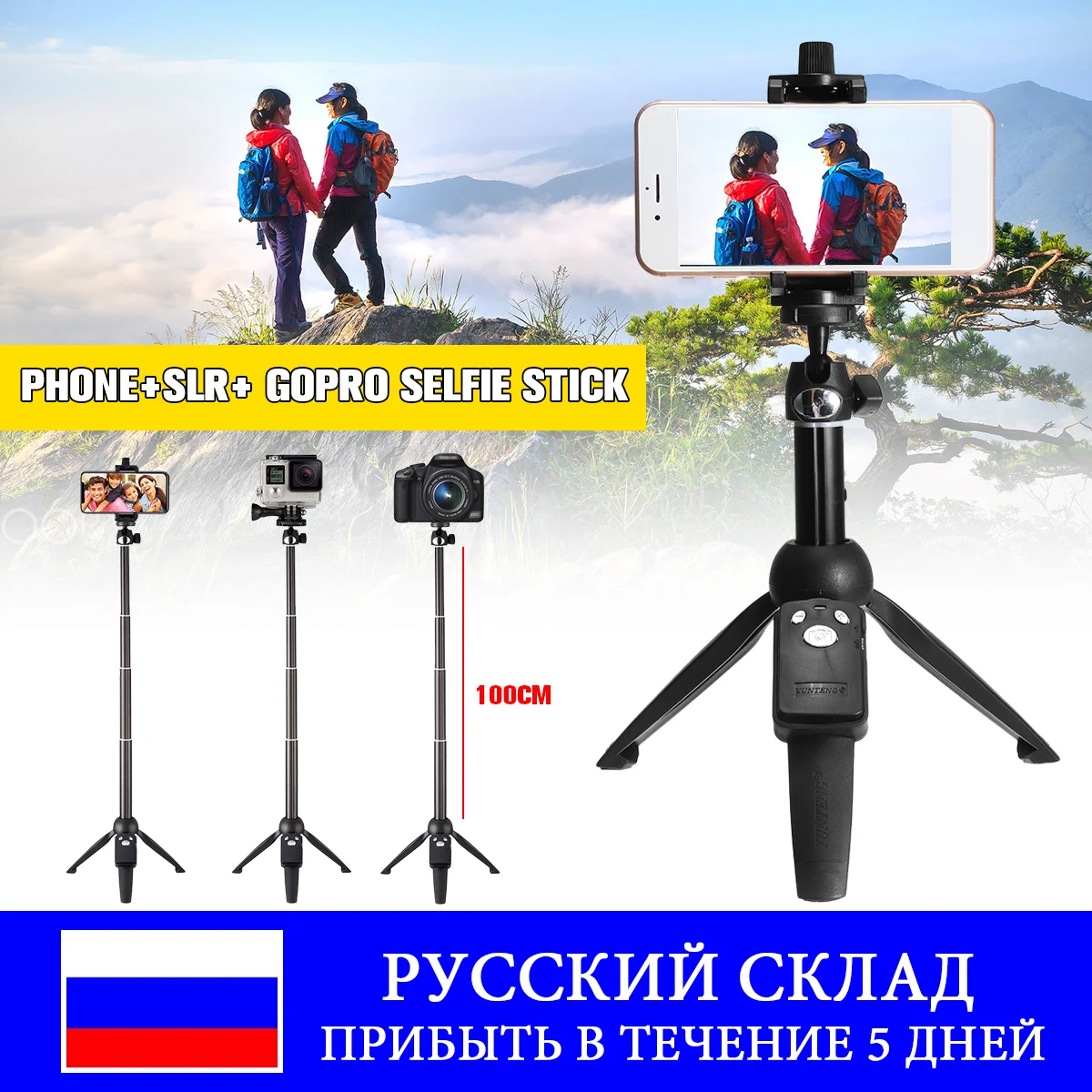 100 см/40 "Универсальный беспроводной bluetooth селфи палка штатив монопод для Gopro для iPhone Android смартфон SLR Спортивная камера