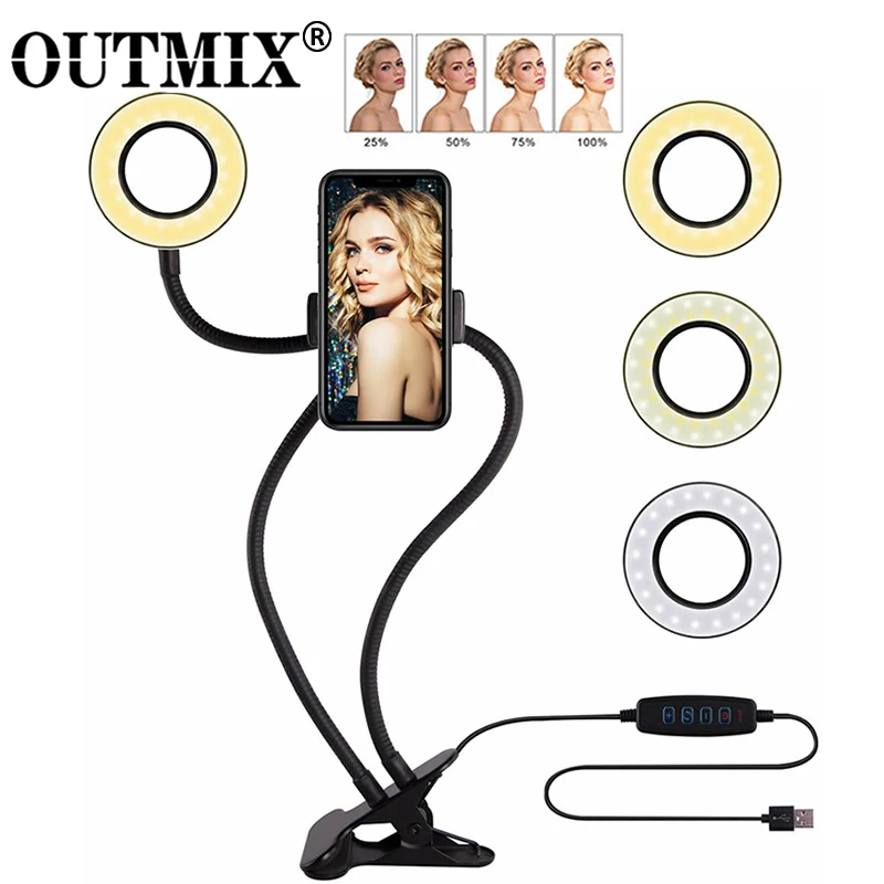 Светодиодная кольцевая лампа для селфи в фотостудии с держателем мобильного телефона для Youtube, прямая трансляция, лампа для макияжа для iPhone/Android