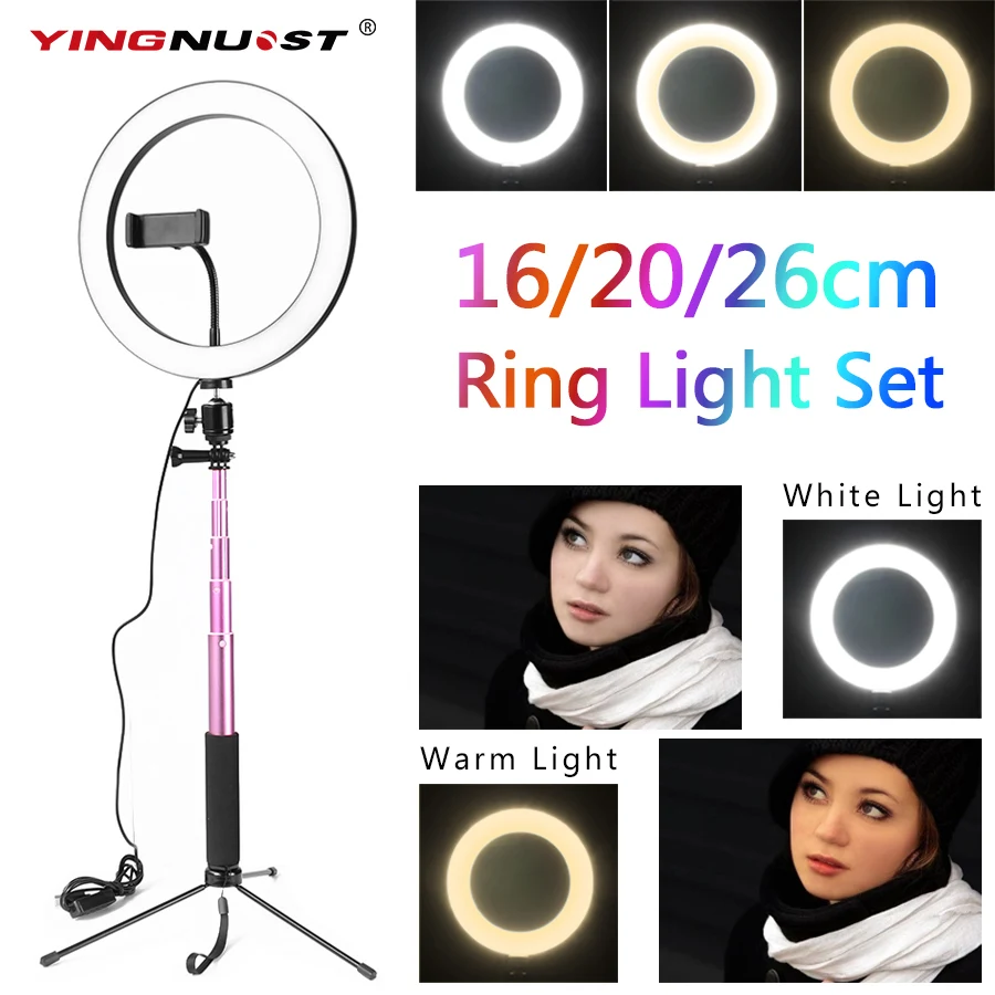 Диммируемая светодиодная кольцевая лампа для студийной камеры для фото телефона, видео Лампа с штативами, селфи палка, кольцо, заполняющая свет для Canon Nikon