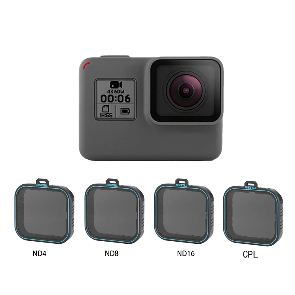 Телесин 4 шт Fiter комплект объектив защитный фильтр (ND4 8 16) + CPL фильтр для Gopro Hero 5, 6 и 7 Черный Герой 7 Камера Accessoreis
