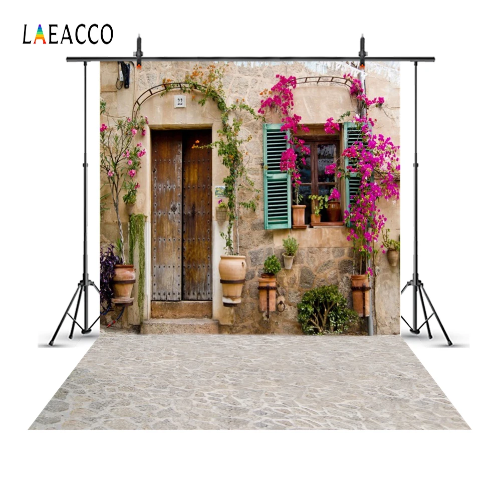 Laeacco старый Сельский окно дома резной цветок двор крыльцо венок страна сцена Фото фоны для фотографий фоны фотостудия