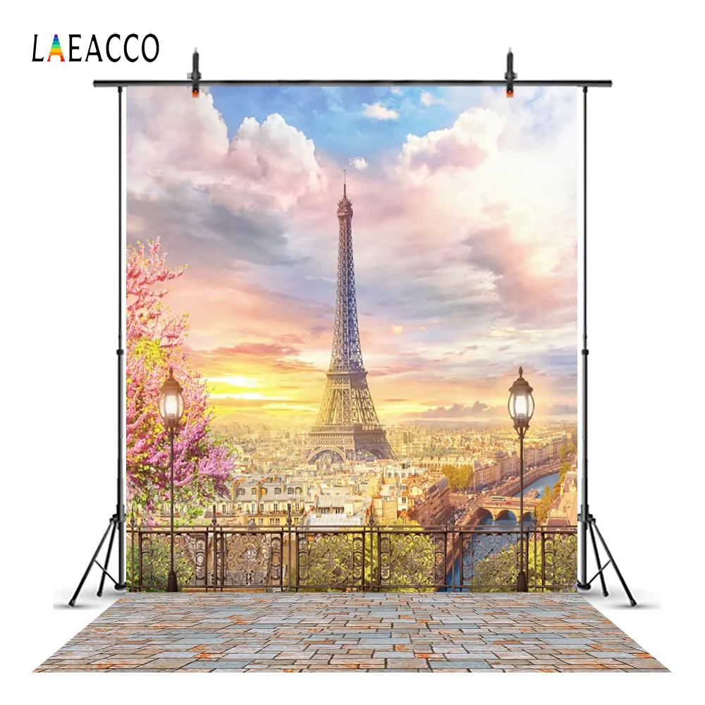 Laeacco облачно Эйфелева башня Париж фонари вид платформы фотографии фоны на заказ фотографические фоны для фотостудии