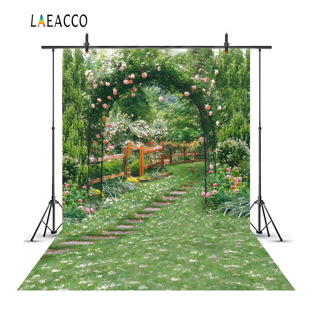 Laeacco сад зеленые цветы лозы Арка ворота живописные фотографии фоны индивидуальные фотографические фоны для фотостудии