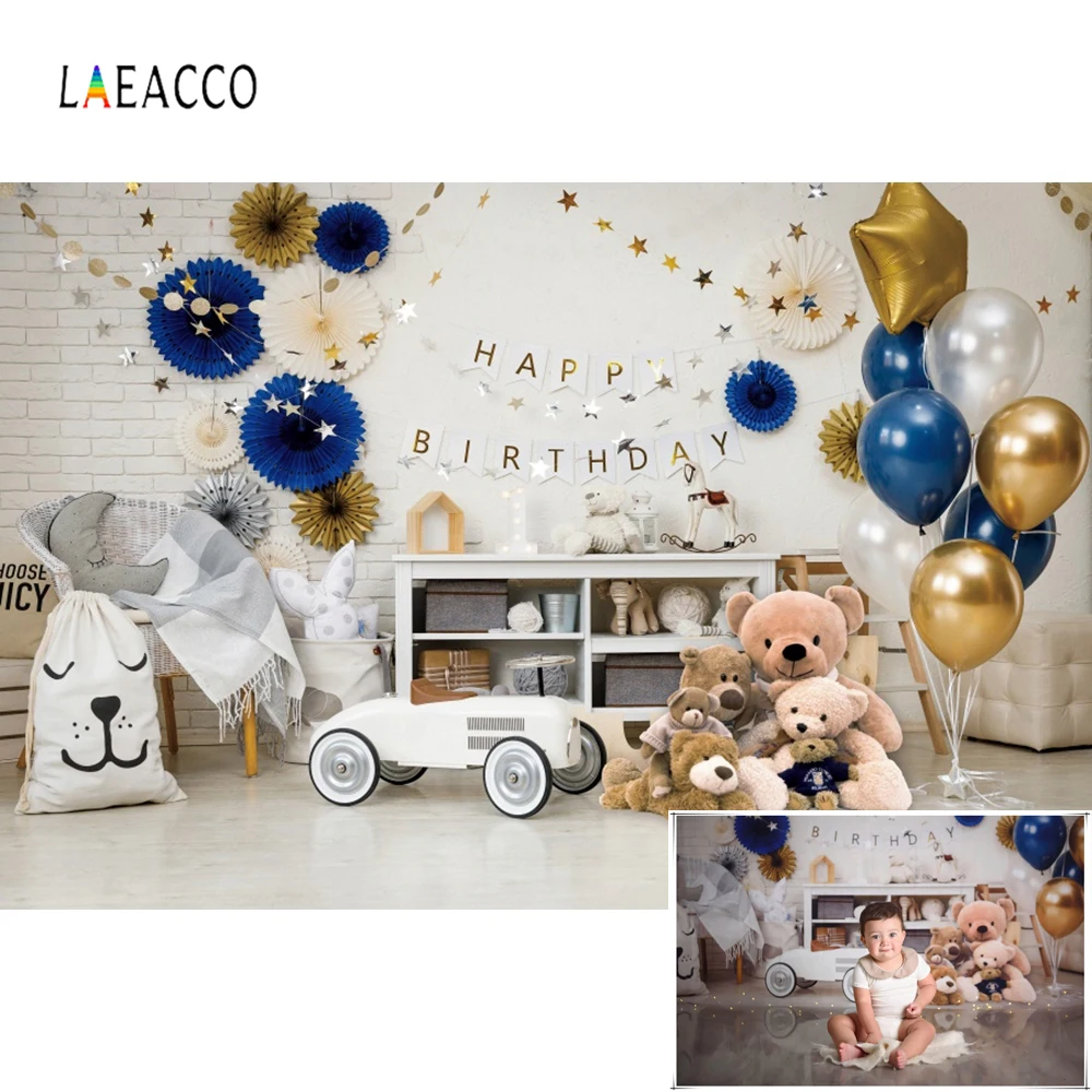 Laeacco воздушные шары на день рождения ребенка игрушка автомобиль медведи полки стул ребенка фотографии фоны для фотографий фоны для фотостудии