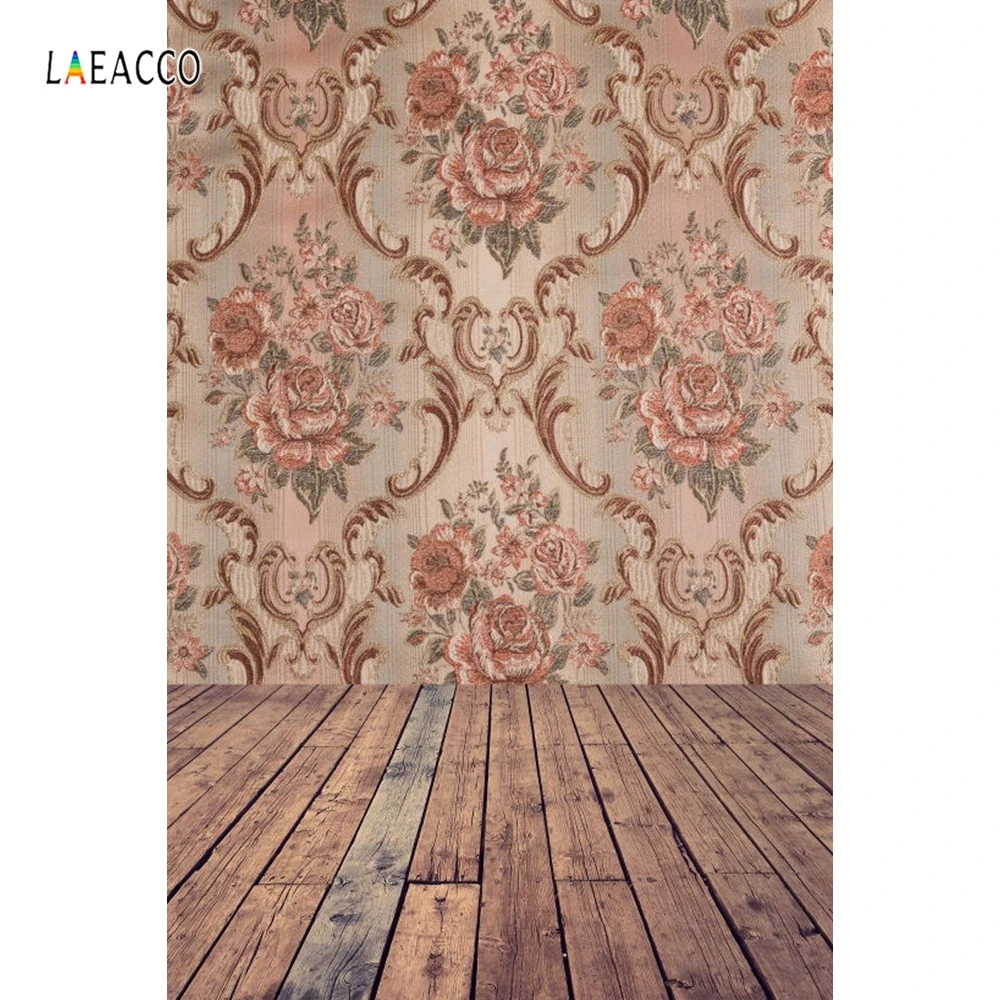 Laeacco Винтаж Дамаск узор деревянный пол портрет фотографии фоны индивидуальные фотографические фоны для фотостудии