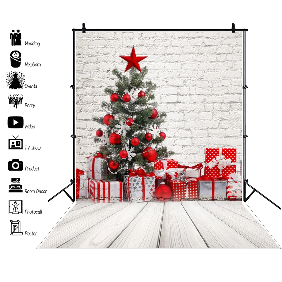 Laeacco серая кирпичная стена деревянная новогодняя елка доска подарок ребенку Портрет фон для фотосъемки фонов фотосессия Фотостудия