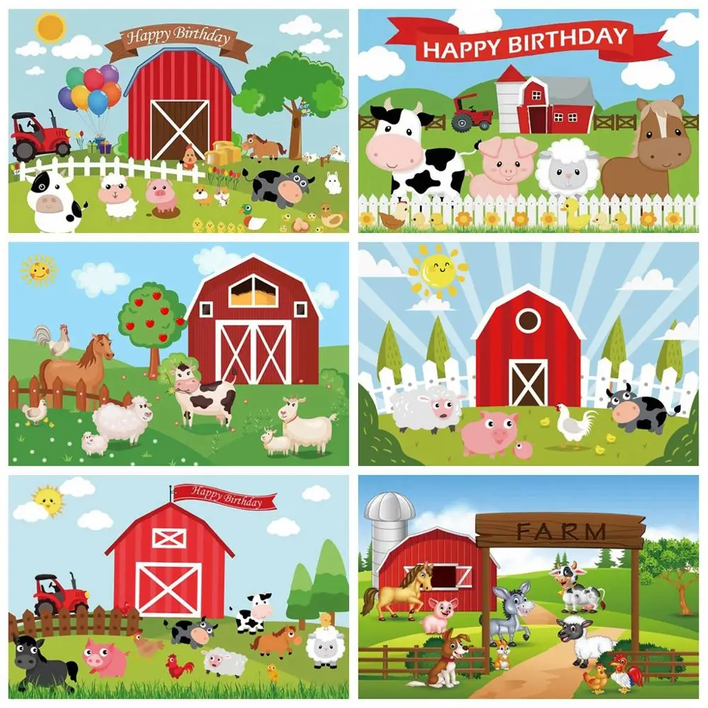 Сельская ферма детский день рождения комикс трактор склад животных новорожденный портрет фото фон для фотостудии
