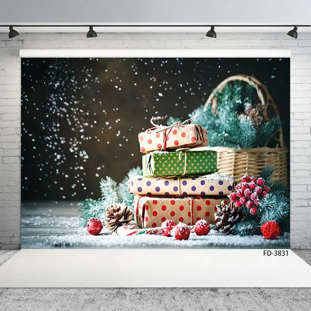 Рождественский Виниловый фон для фотосъемки с изображением оленя сосны конуса подарков корзины снега боке для детей