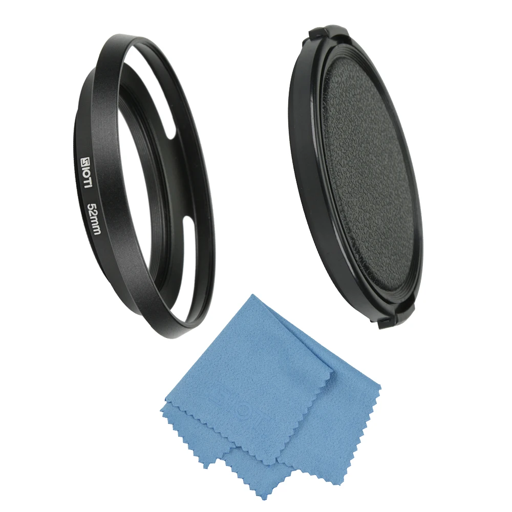 SIOTI Filmy широкоугольная вентилируемая металлическая бленда объектива + салфетка для очистки + крышка объектива для стандартной резьбы объектива для Nikon для Canon для sony