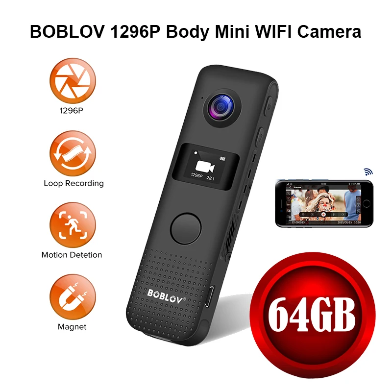 Мини-камера BOBLOV с WIFI датчиком движения 64G HD 1296P профессиональная камера с микро магнитом видеокамера циклическая запись DVR Cam