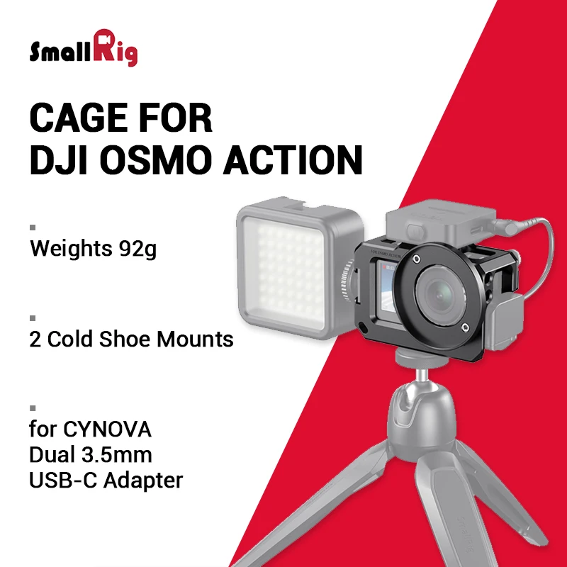 SmallRig Vlog Cage для DJI Osmo Action (совместимый с адаптером для микрофона) совместимый с CYNOVA Dual 3,5 мм USB-C адаптером 2475