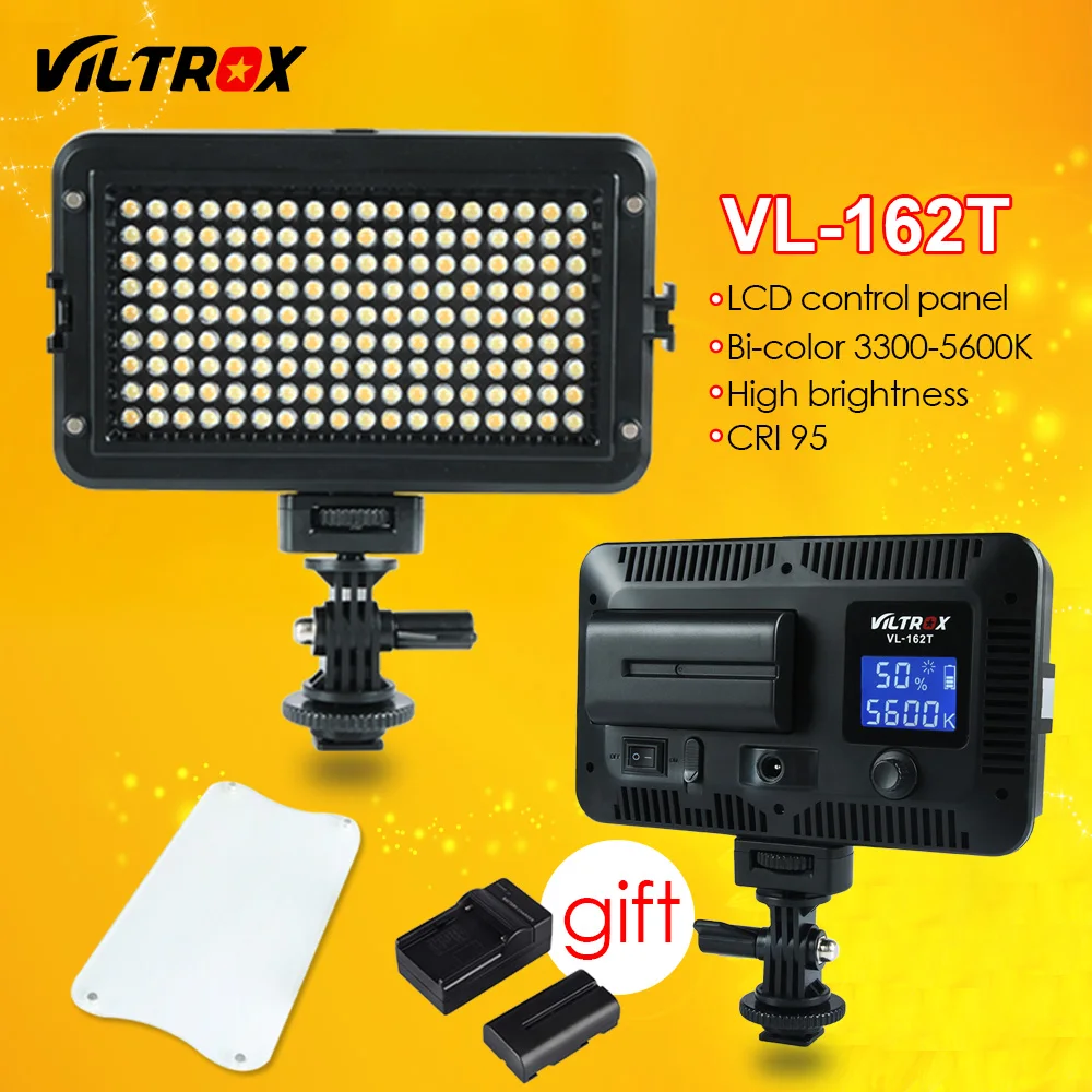 Viltrox VL-162T светодиодный LED видео Студийный свет ЖК-панель 3300 K-5600 K Двухцветный затемнения + батарея + зарядное устройство для Canon Nikon sony DSLR