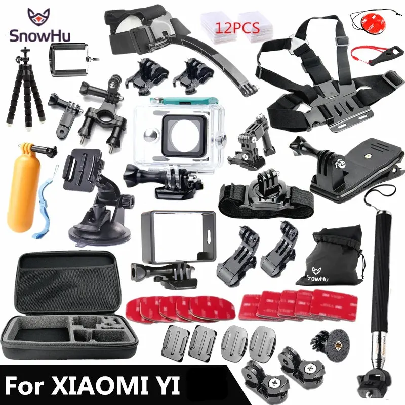 Комплект аксессуаров SnowHu для Xiaomi Yi, водонепроницаемый чехол, защитная рамка, нагрудный пояс с креплением, монопод для камеры Xiao yi 1 GS56