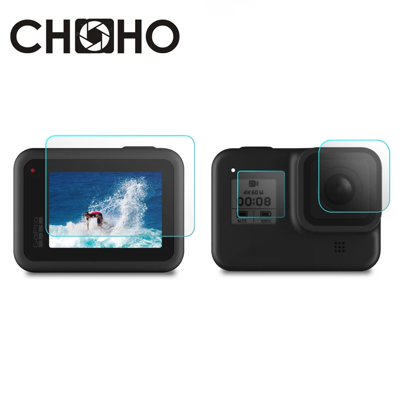 Для Gopro 8 Черные аксессуары, защита экрана закаленное стекло ультра ясный lcd HD + защита объектива 3 шт. Набор для Go Pro Hero 8