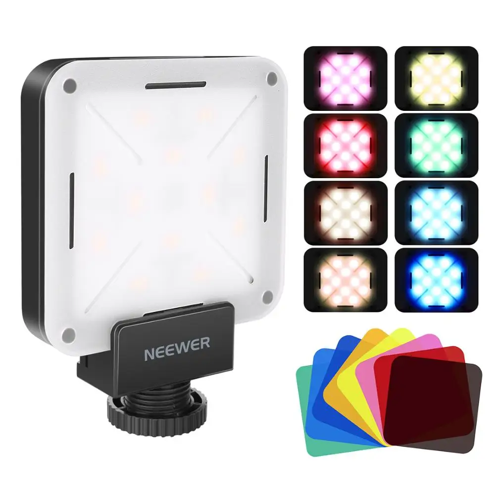 Neewer 12 SMD светодиодный мини Карманный накамерный светодиодный светильник со встроенным аккумулятором/usb-зарядкой/адаптером и фильтрами для ...