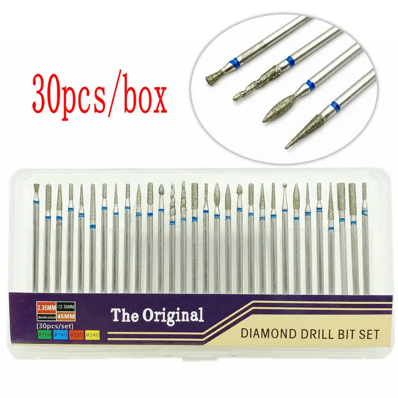 30 шт./компл. Стоматологические алмазные буровые долота для ногтей фреза роторный Бур чистые пилки электрическая машина маникюрные инструменты для ногтей