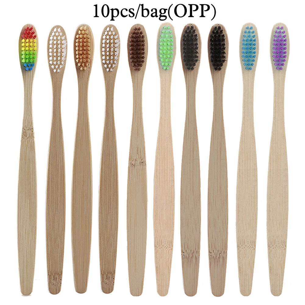 10 шт./партия зубная щетка из натурального бамбука Радужная отбеливающая мягкая Экологичная зубная щетка es набор для ухода за полостью рта