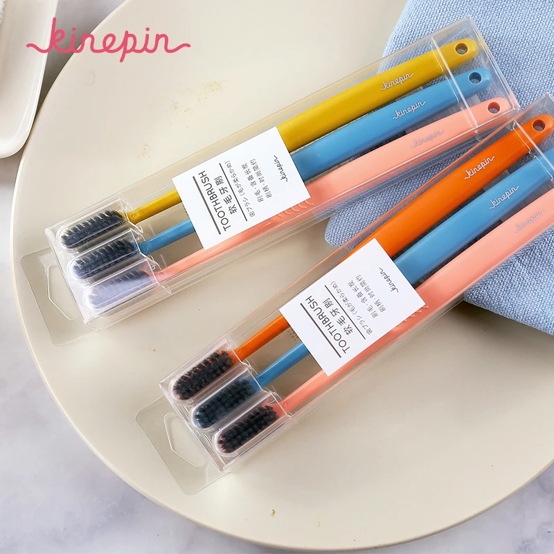 KINEPIN 3 шт. зубные щётки мягкие Binchotan уголь зубная щетка со щетиной взрослых Портативный Путешествия зубы кисточки набор с защитный колпачок