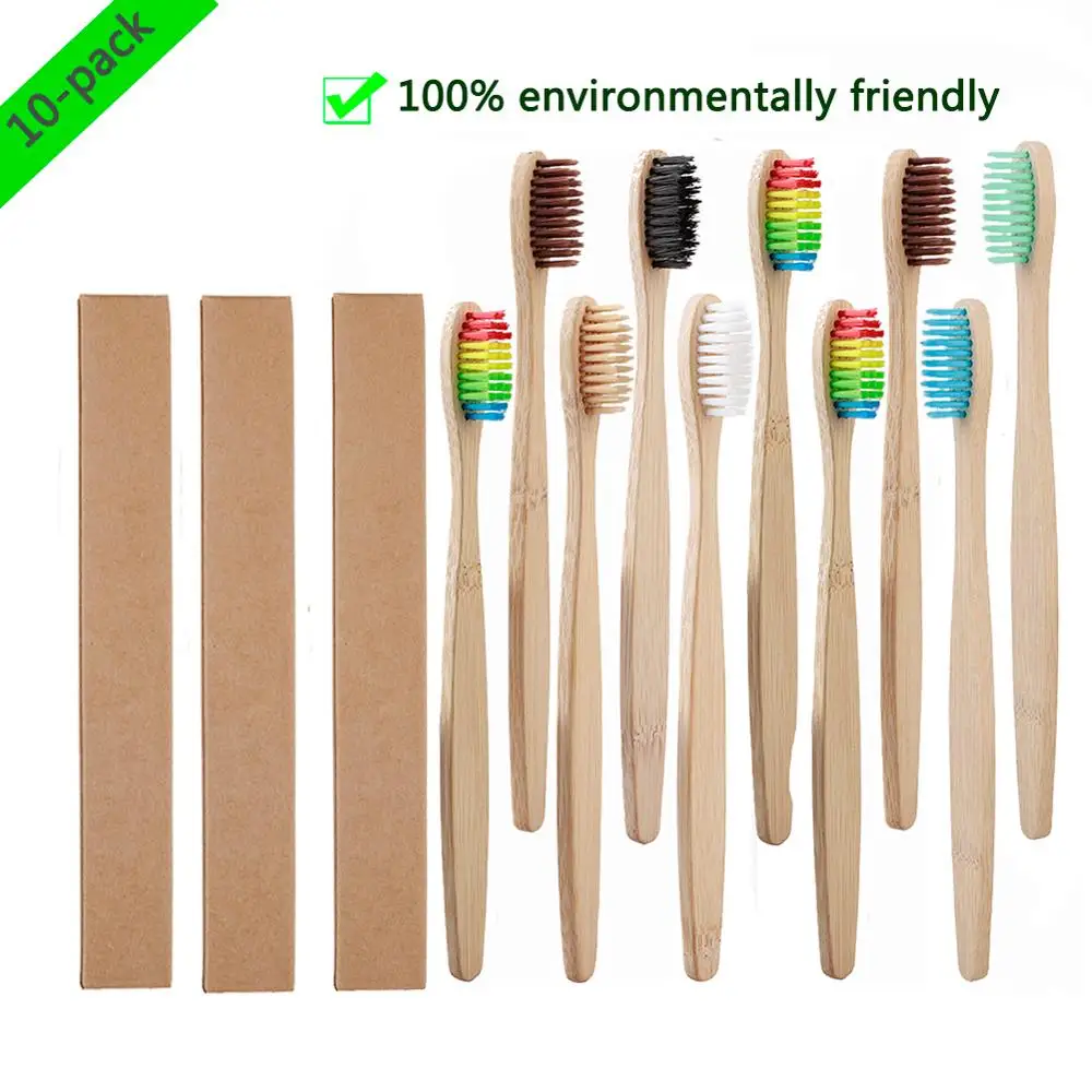 Bamboo зубные щетки для взрослых, 10 шт., разноцветные мягкие щетинки, экологически чистые, cepillo dientes bambu, уход за полостью рта, clareador de dente
