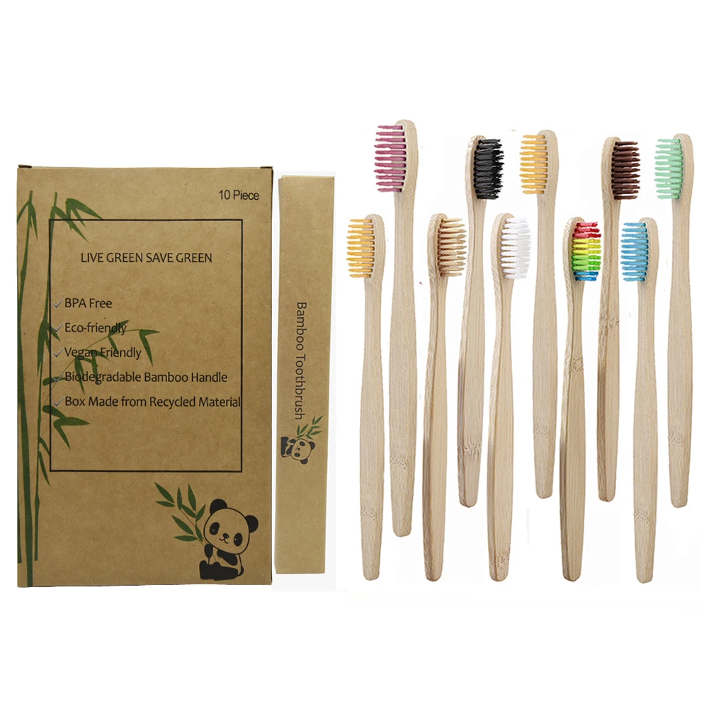 10 упаковок зубная щетка из натурального бамбука из мягкого волокна Экологичная деревянная зубная щетка с бамбуковой ручкой зубная щетка с ...