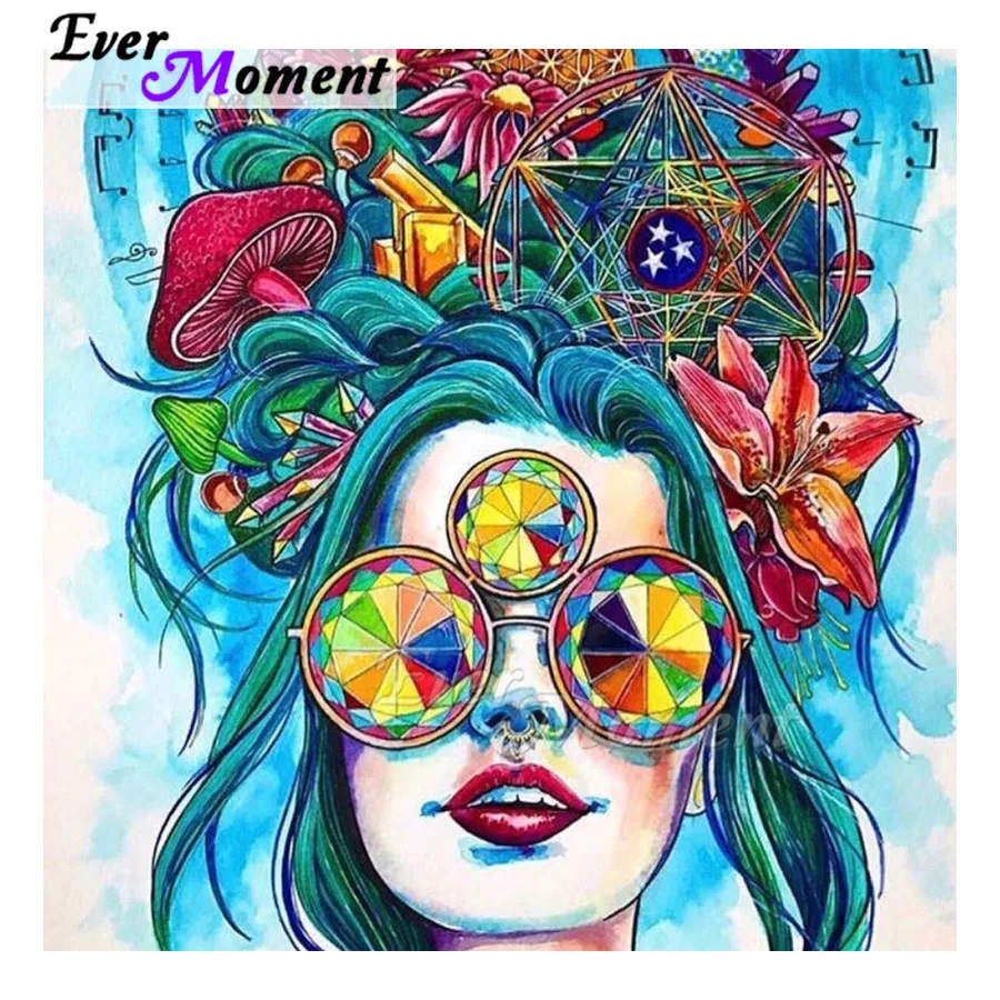 Алмазная живопись Ever Moment, полная квадратная дрель, женский цветок, гриб, волосы 5D, сделай сам, стразы для хобби, алмазная вышивка ASF2044