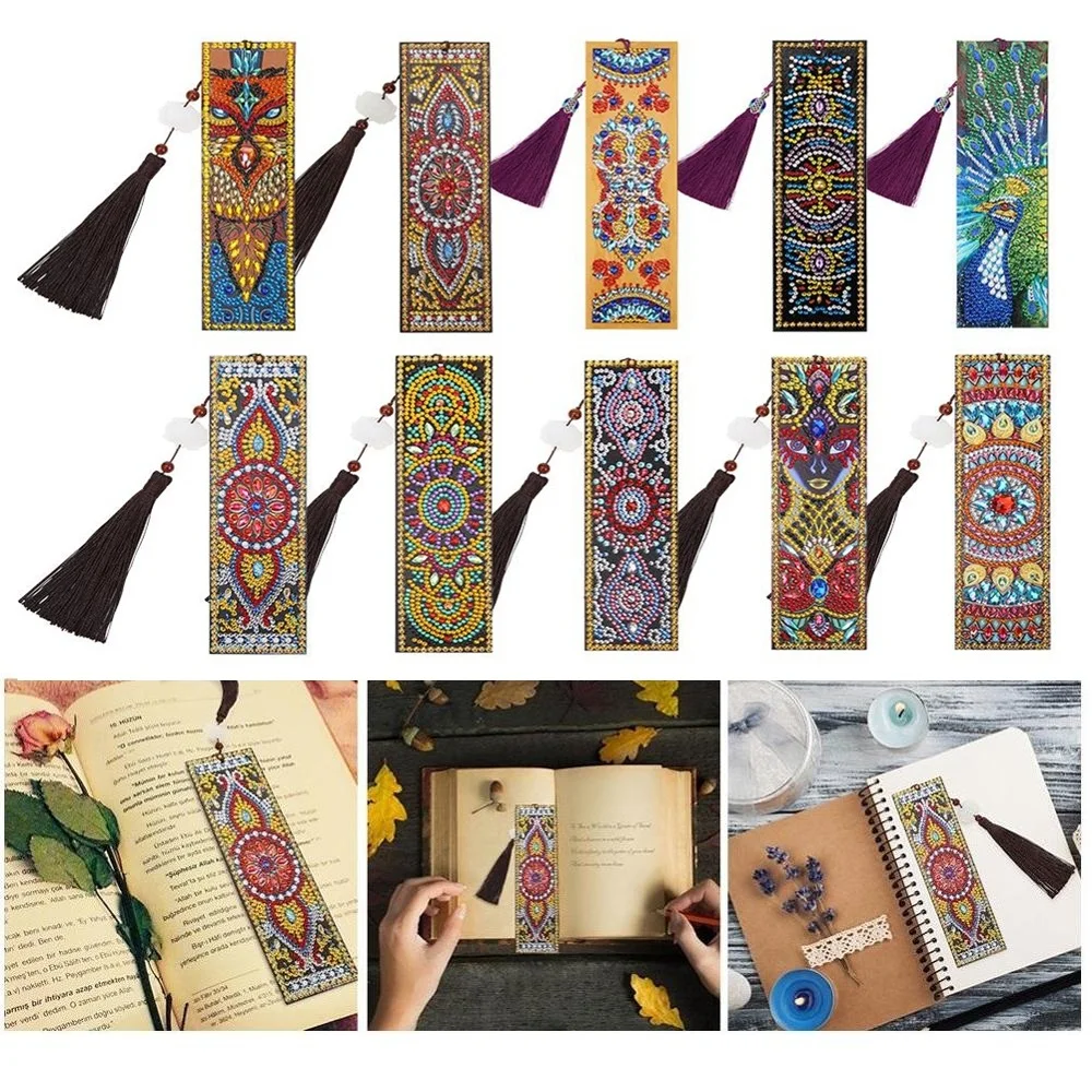 DIY алмаз особенной формы живопись кожаная Закладка Книга Страница книжка с кисточкой знаки Подарок для книг офисные принадлежности Рождест...