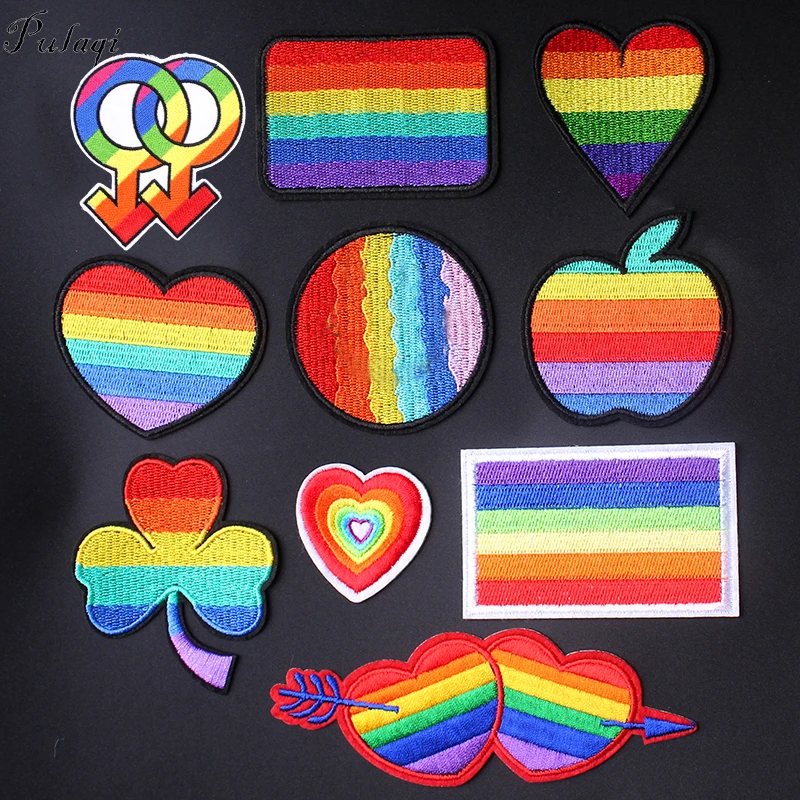 Pulaqi флаг ЛГБТ патч Сделай Сам вышитые железные на патчи для одежды нашивки с радугой на одежде Бендер полосы значки аппликации G