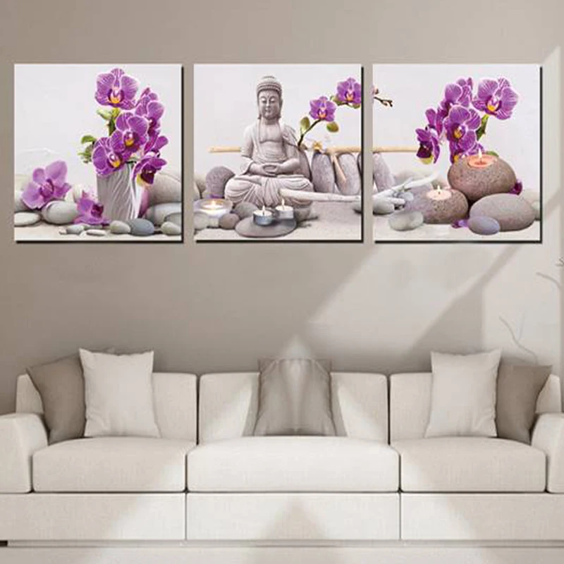 Триптих цветок Будда мозаичная вышивка алмазная живопись Настенная Наклейка Смола diy Алмазная вышивка квадратная дрель полный горный хрус...