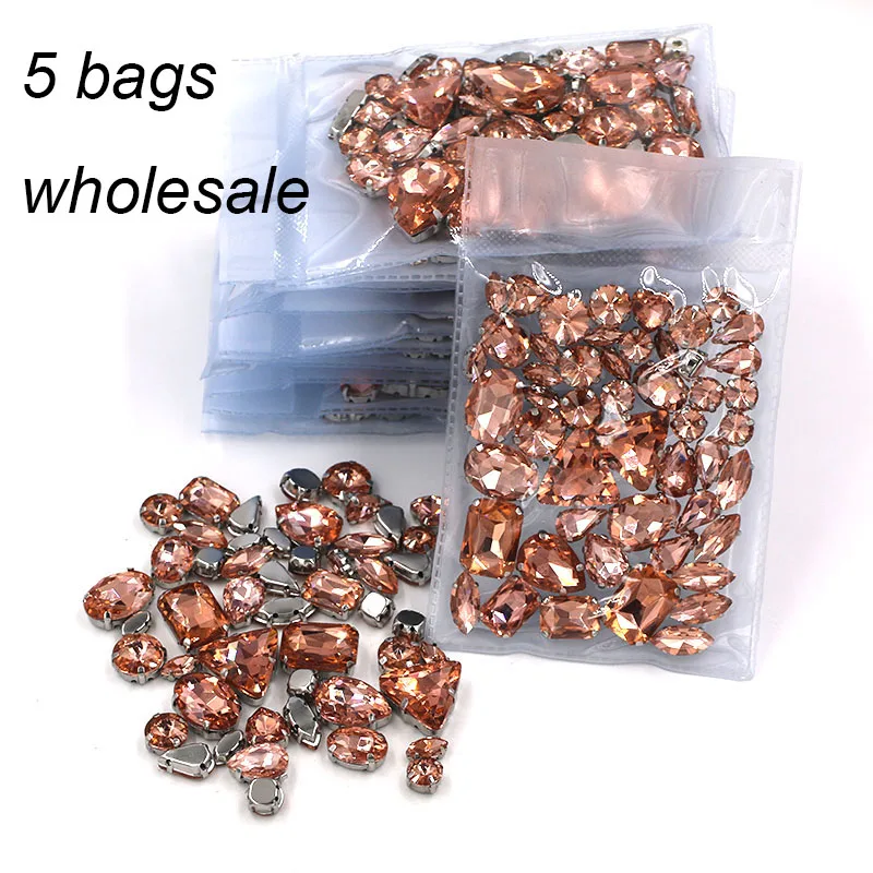 Аксессуары для одежды, оптовая продажа, 5 мешков, разноцветная форма, стекло, кристалл, вода, красный цвет, пришить на Серебряное основание, когти, стразы, сделай сам, свадебное платье