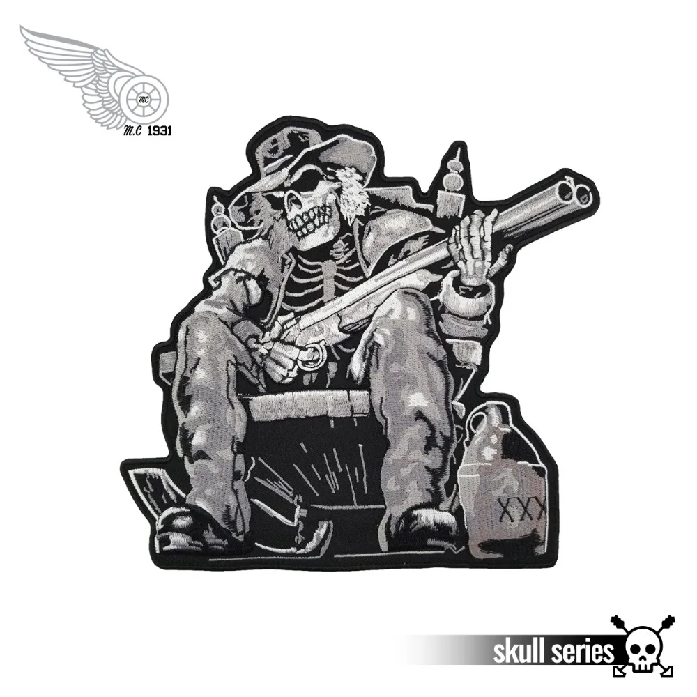 Руки с пистолетом Череп Жилет Мотоцикл Вышитые Утюг на спине куртки патч черный твил ткани Бесплатная доставка DIY экологичные