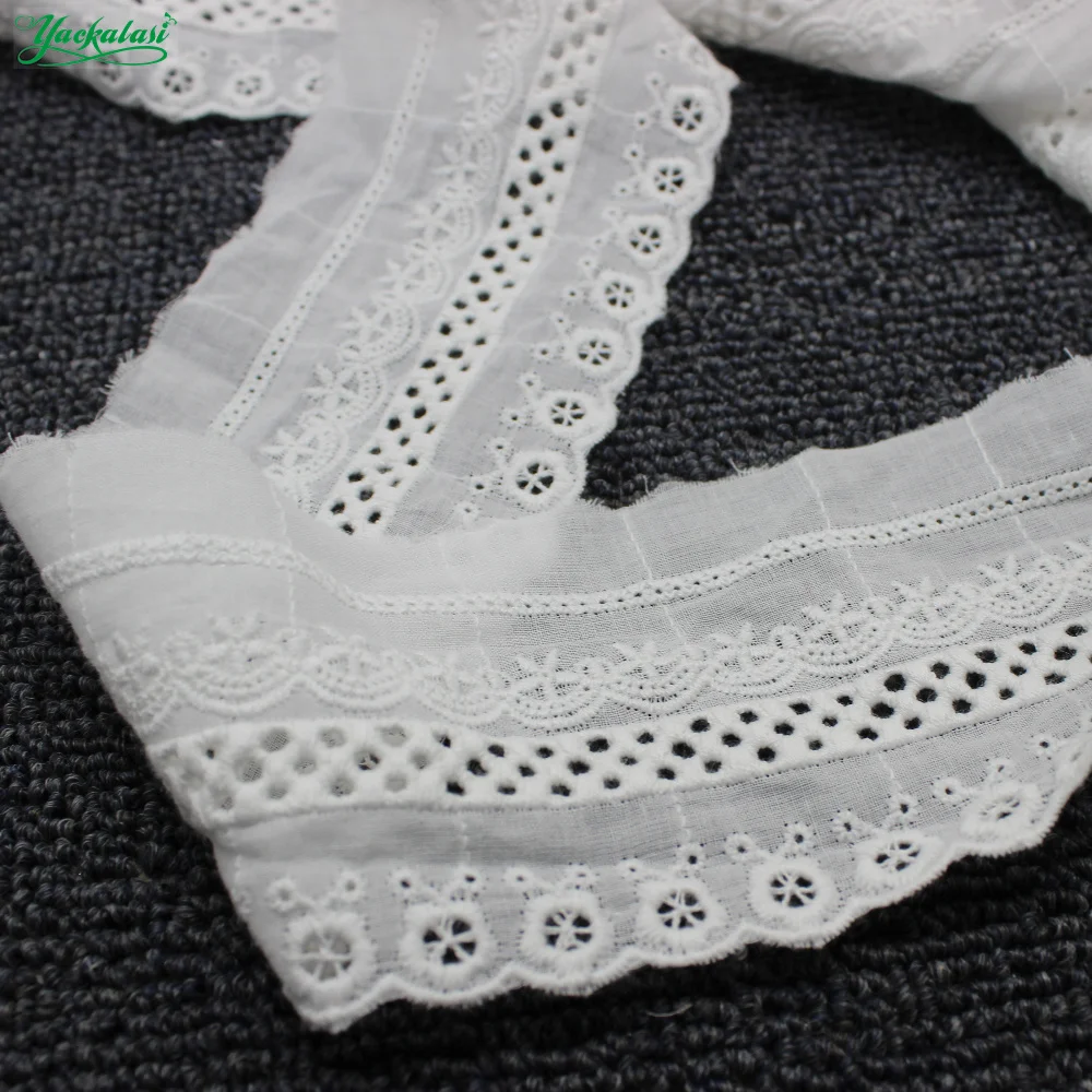 Yackalasi 15 ярдов хлопка Кружево ушко вышитые Кружево ткани белый черный швейцарский хлопок вуаль аппликация 3D цветок планки DIY 7.5 см