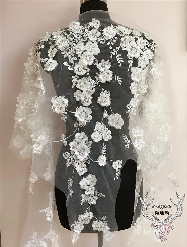 Кружевная Обшивка с объемным жемчугом и бусинами, белая отделка, аксессуары для шитья, кружевная ткань с бусинами для свадебной вуали, корсет для свадьбы, 1 ярд
