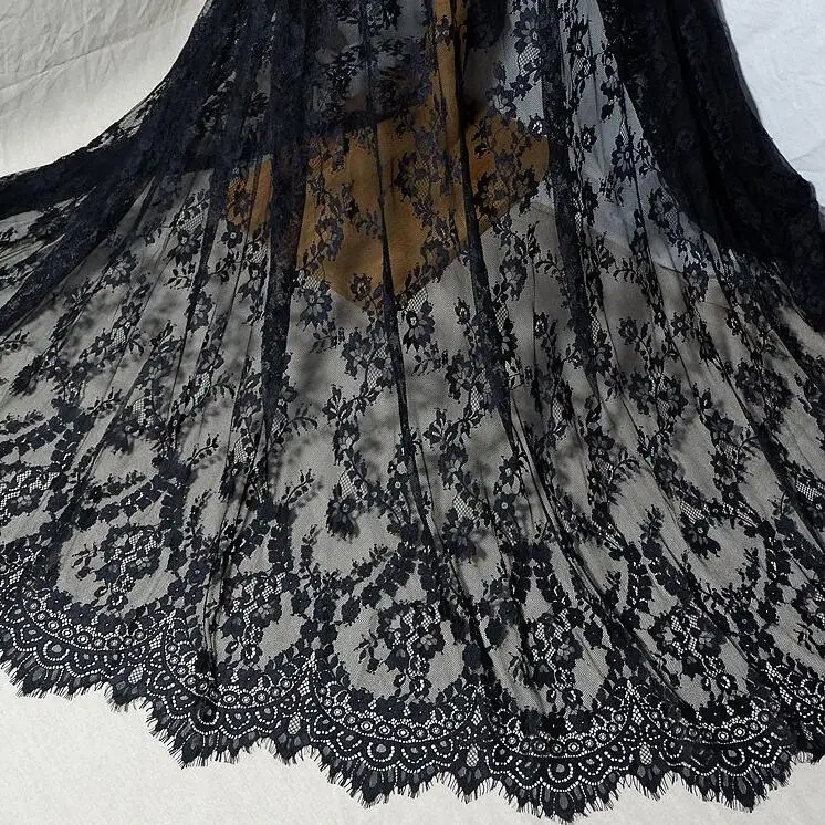 3 м/шт. Width150cm черные красивые цветы жаккардовые утолщение кружево с ресничками ткань свадебное платье кружевная ткань RS37