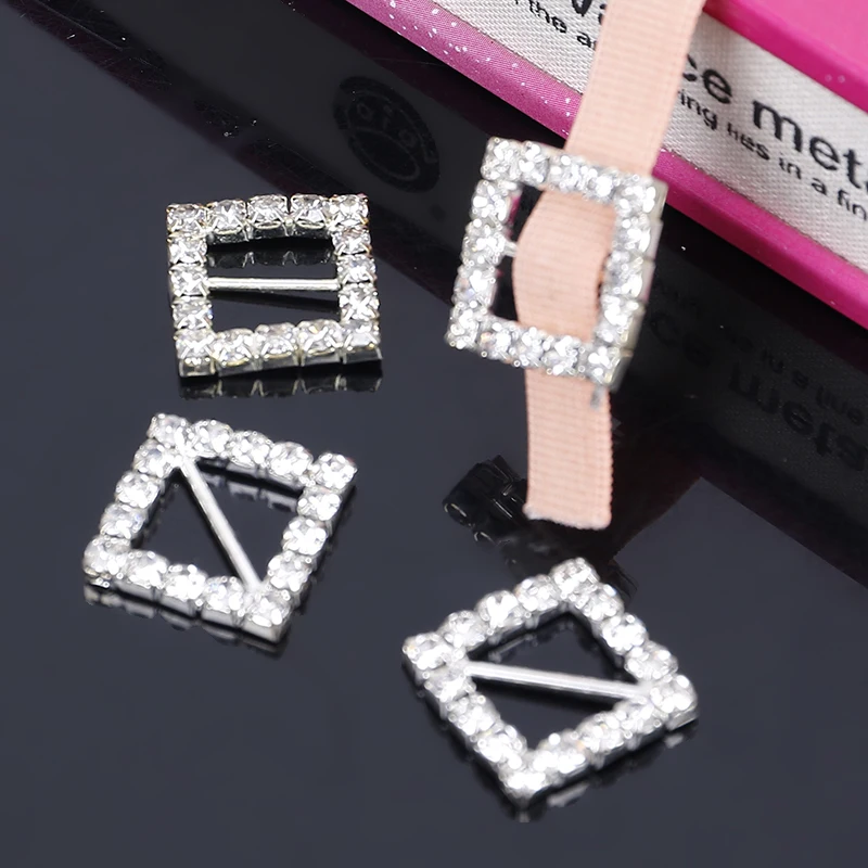 2016New 100 шт. расшитые стразами с квадратной пряжки алмаз Пуговицы Приглашение Лента слайдер для свадьбы bk05