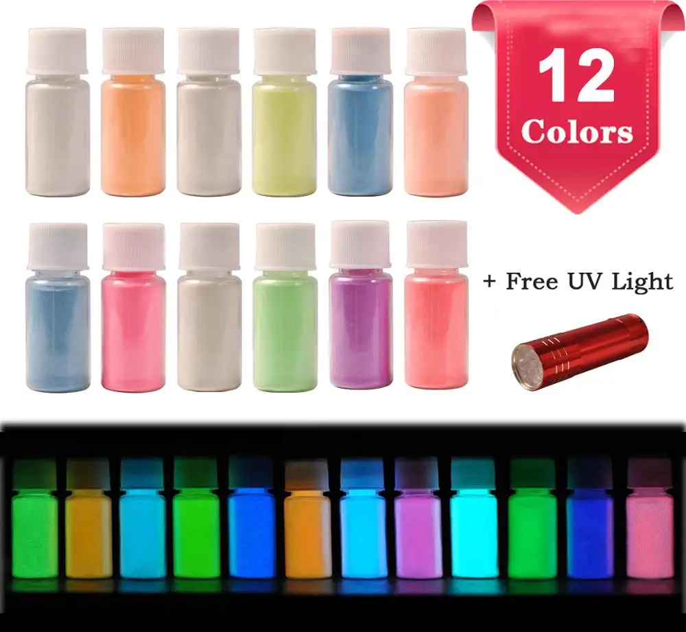 Фосфорная пудра блеск для ногтей Порошковая Слюда Порошок 12 цветов пыль светящийся флуоресцентный пигмент порошок блеск для ногтей