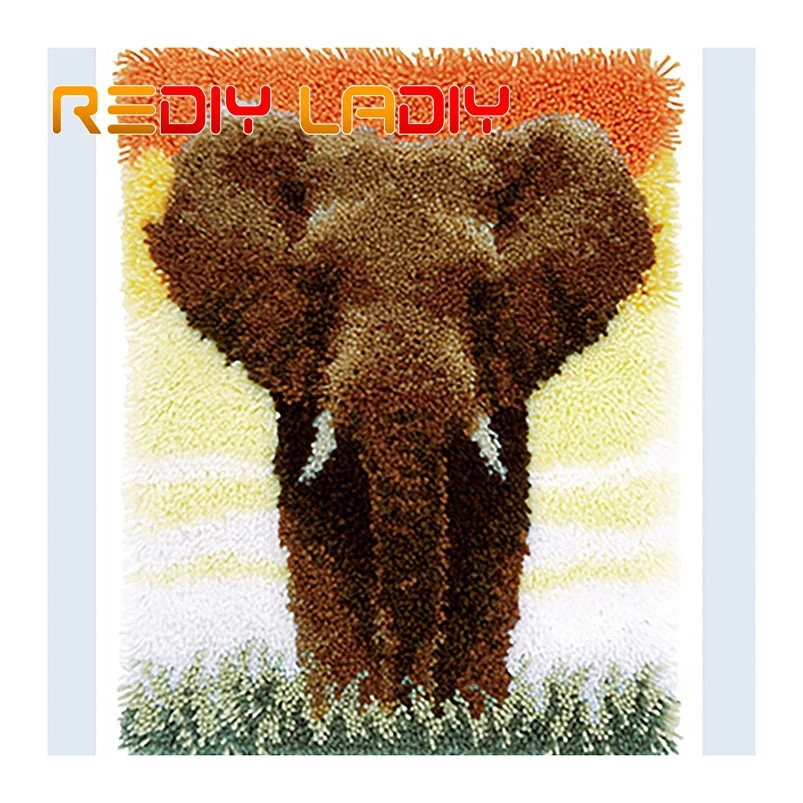 Набор ковриков с крючками-защелками Сделайте свой собственный ковер, слон, закат, подушка для вязания крючком, сделай сам, ковер, акриловая пряжа, Печатный холст, искусство и ремесла