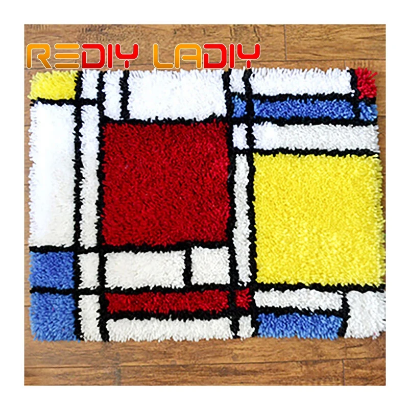 Набор ковриков с защелкой Сделайте свой собственный ковер с клетчатым узором, подушка для вязания крючком, ковер из акриловой пряжи, с рисун...