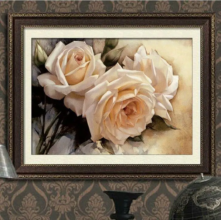 90*60 см рукоделие DIY Вышивка крестиком, Набор для вышивания комплект, цветок белая Роза узор вышивка крестиком картина ручной работы подарок
