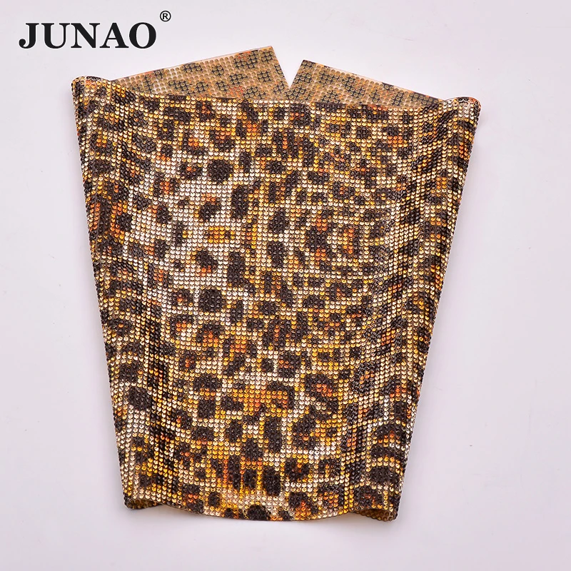 JUNAO 24*40 см Leopard цвет исправление со стразами отделкой сетки стекло бисерная ткань простыни кристалл аппликация со стразами группа DIY обувь пл...