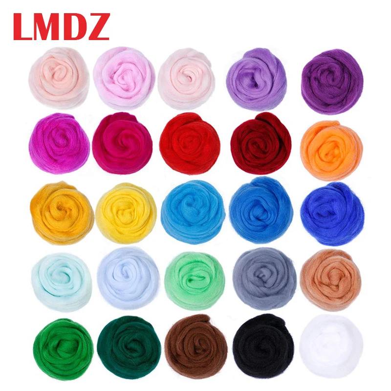 LMDZ 25 Цвета Шерсть-ровинг игла для валяния шерстяной пряжи Ровинг шерстяной DIY спиннинг волокна шерсти для игла для валяния 10g/Цвет всего 250 г