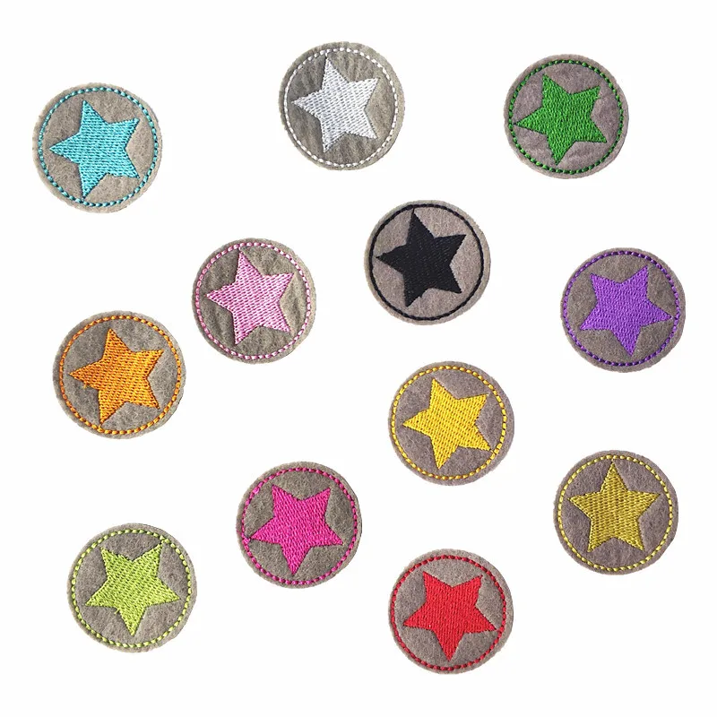 Цветные нашивки с пятиконечной звездой для одежды, сделай сам, полоски, железные Аппликации, термонаклейки для одежды, круглые значки с вышивкой @ E