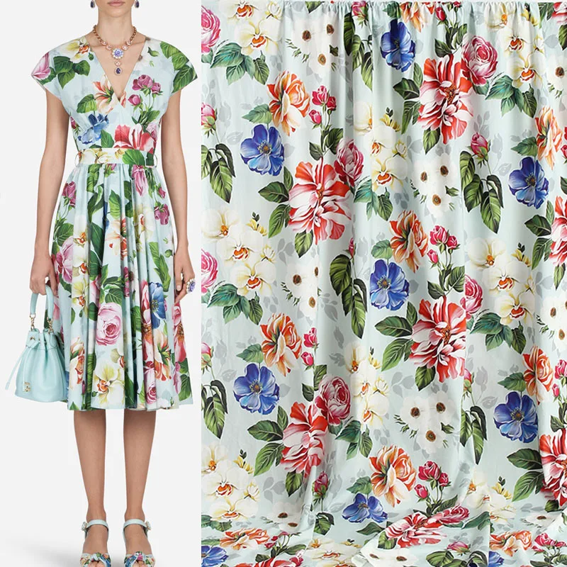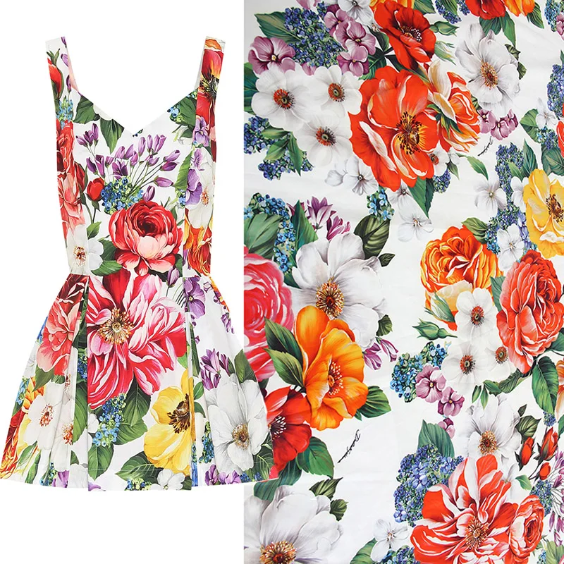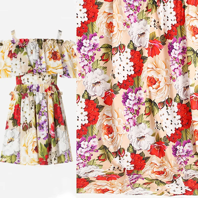 145 см ширина разноцветные цветы Печать Хлопок или имитация хлопчатобумажной ткани для женщин платья юбки блузка DIY шитье