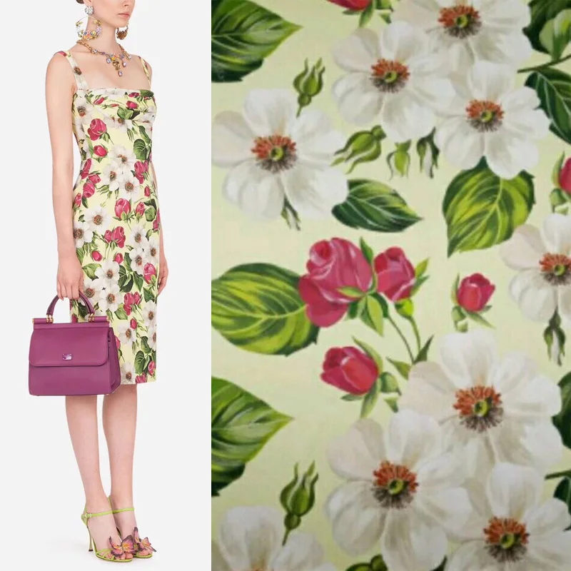 100X145cm Сицилия большой цветок Хлопок Имитация Хлопок полиэстер ткань для женщин летнее платье Блузка Tissu Tela Хлопок материалсделай сам