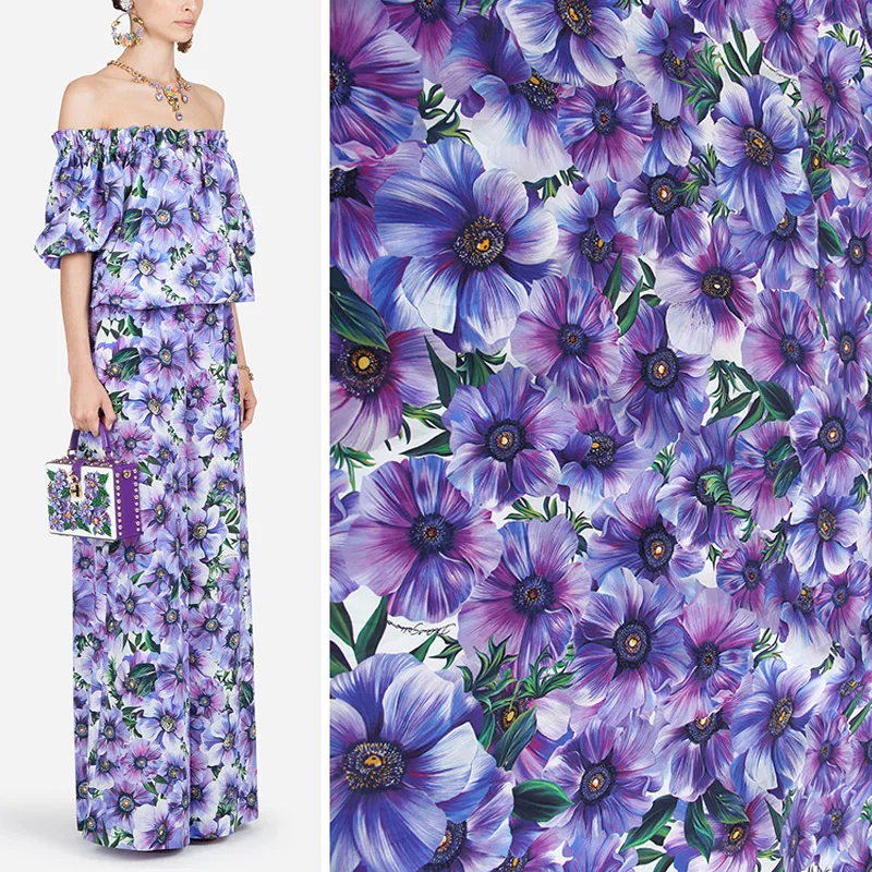 100X145cm Сицилия фиолетовый анемон Хлопок и имитация хлопчатобумажной ткани для женщин летнее платье Блузка Tissu Tela Хлопок материал сделай сам