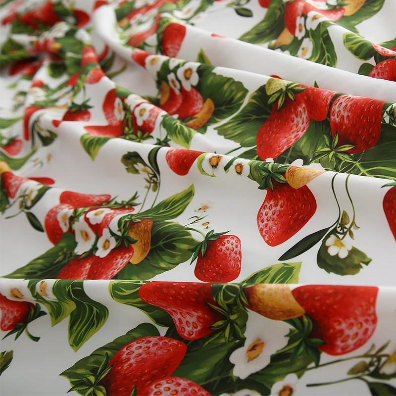 100X145 см красный клубника белый полиэстер ткань для женщин летние платья юбки блузка Брюки Шитье